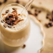 Vanilla ice cream, chocolate sauce, espresso and milk