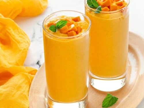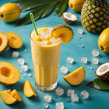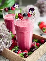 Celery sticks Banana Red apple Strawberries Mint leaves Mango juice